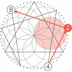 La flecha al Eneatipo 4 de forma sana, ayuda al Eneatipo 2 a centrarse en sus propias necesidades, en centrarse en sí mismo ante el olvido que las posiciones insanas de su eneatipo le han llevado. Por ejemplo, “si no cuido de mi hija nadie lo hará mejor que yo”, puede llevar al propio olvido de las necesidades del Eneatipo 2.