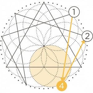 Una de las características que puede llegar a tener el Eneatipo 4 es el relativismo moral y reflexión por la realidad, vinculándolo con su mundo emocional, por ello, este eneatipo encuentra en su flecha al Eneatipo 1 un enfoque de vida pragmático, donde sus emociones no toman tanto protagonismo en sus acciones, domina su mente. Por tanto, aprende a realizar juicios imparciales sin que la emocionalidad juegue tanto peso.