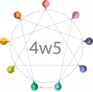 El tipo 4 cruzado con el 5 es muy interesante, ya que no forman parte de la misma Tríada. Los 5 son miembros de la Tríada de la Cabeza, o de los Pensamientos, mientras que los 4 son de la Tríada del Corazón. Así, en la interacción de ambas descubrimos que la introversión se agudiza aún más. Por ello, no se preocupan de cómo les ve la gente o de saber adaptarse a diferentes entornos. Solo se centran en abrir nuevas puertas y respirar el aire del progreso. La clave para conseguirlo es confiar en los susurros de la percepción, que llevará a los 4a5 a hacer las preguntas correctas. Lo único que les queda es estar en sintonía interna y encontrar lo más increíble en lo que deben convertirse en expertos: ellos mismos.